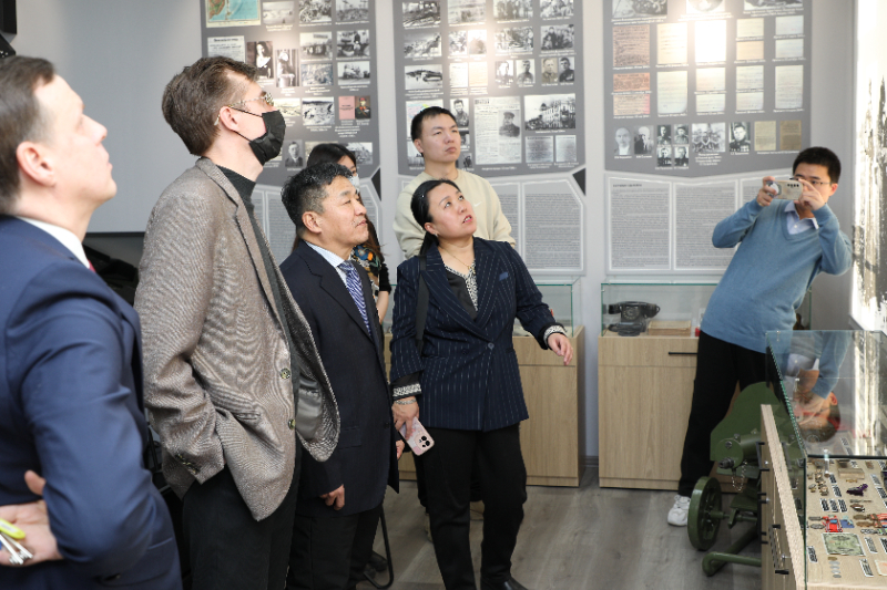 Гостям была предложена небольшая экскурсия по университету. Делегация осмотрела Институт Конфуция, технопарк и недавно созданное музейное пространство, посвященное Второй мировой войне на Дальнем Востоке.
