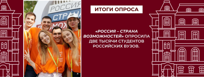 В преддверии Дня студента президентская платформа «Россия – страна возможностей» опросила две тысячи студентов российских вузов. В ходе опроса респонденты оценили учебный процесс, рассказали о зарплатных ожиданиях, о заинтересованности волонтерской деятельностью и о том, что хотели бы помогать развивать страну и свой регион.