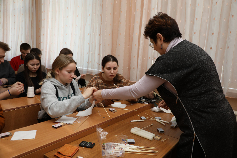 В конце встречи Ирина Владимировна поблагодарила за участие студентов и призвала участвовать в помощи участникам СВО любым возможным способом: вносить пожертвования, помогать лично в мастерской «Фабрика для СВОих», участвовать в поздравительных акциях к праздничным датам. Ведь наша поддержка – это то, что каждый из нас в силах вложить в общее дело на благо нашей страны!