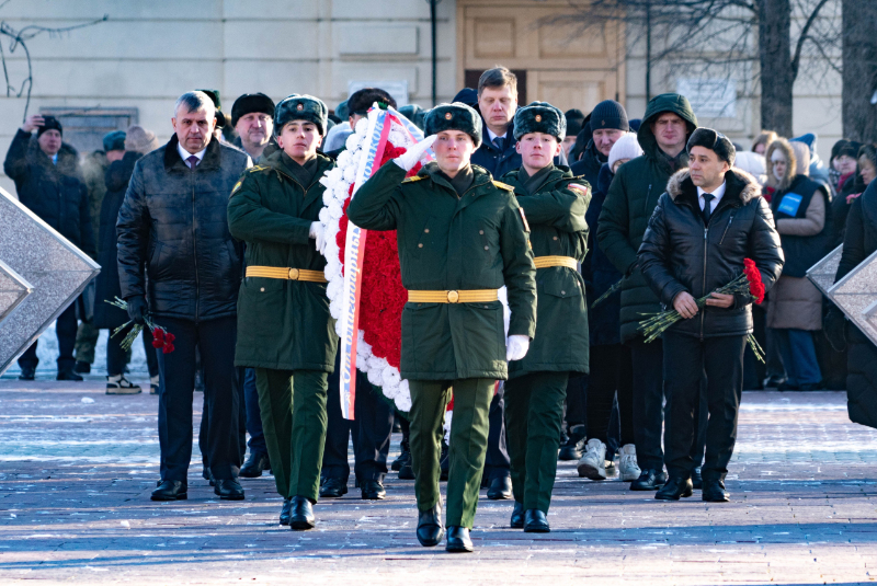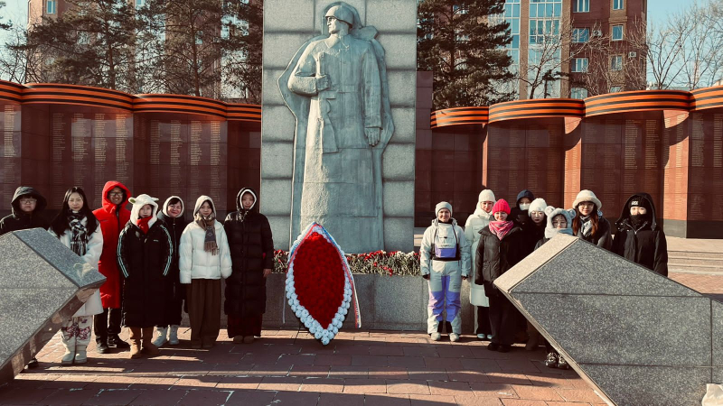 Студенты и сотрудники БГПУ приняли участие в торжественной церемонии возложения цветов к памятнику воинам-амурцам на площади Победы, посвященной 80-летию полного освобождения Ленинграда от фашистской блокады.