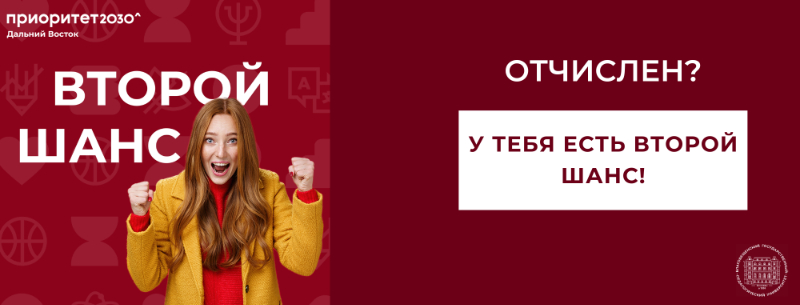 Новостная лентаОтчислен? У тебя есть второй шанс!9 Апреля 2024Отчислен? У тебя есть второй шанс! В рамках программы «Приоритет – 2030. Дальний Восток» в БГПУ запущен проект «Второй шанс» — это уникальная возможность для отчисленных студентов восстановиться в число обучающихся университета на особых условиях! Только до 31.10.2024 года восстановившимся студентам предоставляется скидка на обучение в размере, равном стоимости одного семестра обучения для заочной формы и 1 месяца обучения для очной формы обучения. Но есть небольшие условия: 1. Студент должен быть отчислен не позднее пяти лет назад; 2. У него не должно быть финансовой задолженности перед БГПУ. Студенты, отчисленные с бюджетной формы обучения, могут восстановиться на бюджет (при наличии свободных мест). Заинтересовались? Тогда смело обращайтесь в деканат вашего факультета или по электронной почте: secondchancebgpu@mail.ru Либо можно просто заполнить короткую форму: ссылка C вами обязательно свяжутся!