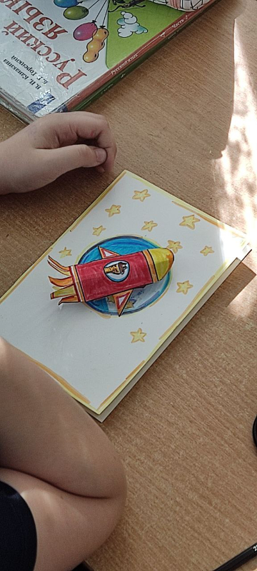В память об этом грандиозном дне СПО «Мастера добра» провели для учащихся 4 класса МАОУ «Школа №10» г. Благовещенск внеурочное занятие, где изготовили открытки с объёмной ракетой. Учащиеся с увлечением выполняли задания и получились замечательные открытки, которые оставели себе на память.