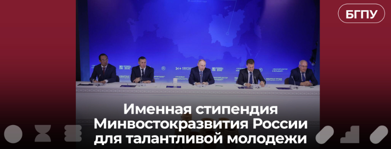 Министерство по развитию Дальнего Востока и Арктики в ближайшее время учредит именные стипендии для выпускников школ всех регионов России, получивших 100 баллов по одному и более предметам ЕГЭ или являющихся победителями и призерами всероссийских олимпиад и поступивших в вузы Дальнего Востока. Эта инициатива обсуждалась сегодня на встрече Президента с участниками программ, сделавшими выбор в пользу работы на Дальнем Востоке.