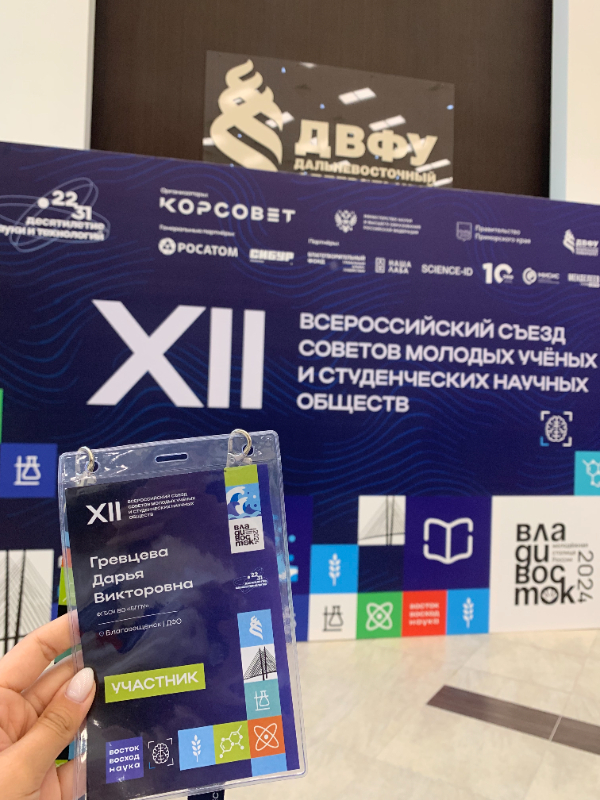 Новостная лентаXII Всероссийский съезд советов молодых ученых и студенческих научных обществ19 Июля 2024XII Всероссийский съезд советов молодых ученых и студенческих научных обществ С 15 по 17 июля во Владивостоке, прошел XII Всероссийский съезд советов молодых ученых и студенческих научных обществ. Наш университет был представлен студенткой 2 курса историко-филологического факультета, председателем «Студенческого научного объединения ИФФ» Гревцевой Дарьей. Деловая программа Съезда была посвящена государственной поддержке, научной политике, молодежным сообществам и инициативам Десятилетия науки и технологий. В рамках мероприятия Дарья посетила множество образовательных площадок, таких как: «Инструменты поддержки научных исследований в России: возможности для молодых ученых»; «Роль гуманитарных наук в преодолении больших вызовов, стоящих перед Россией»; «Секреты эффективного продвижения научной конференции» и многие другие. «Я очень рада, что мне удалось посетить XII Всероссийский съезд советов молодых ученых и студенческих научных обществ. Подобные мероприятия являются отличной возможностью для студентов и ученых со всей страны встретиться лично для обмена знаниями и опытом. Во время съезда мне удалось познакомиться с председателями СНО многих университетов нашей страны. Данный опыт очень ценен и я уверена что полученные знания положительно отразятся на развитии «Студенческого научного объединения ИФФ», – поделилась впечатлениями председатель СНО ИФФ Гревцева Дарья.