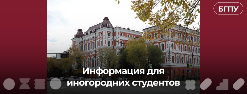 Новостная лентаИнформация для иногородних студентов22 Августа 2024Информация для иногородних студентов При заселении в общежитие при себе необходимо иметь: - паспорт; - СНИЛС; - медицинский полис; - флюорографию (не ранее октября предыдущего года); - прививочный сертификат (все прививки по возрасту); (студентам I курса кроме оригиналов перечисленных документов иметь, их копии) - 2 фотографии (3х4) (для студентов 1 курса и студентов, впервые заселяющихся в общежитие); - квитанцию об оплате проживания в общежитии за сентябрь (оплатить можно в кассе БГПУ, терминале или онлайн). Медицинский осмотр проходит в общежитии №2 (ул. Ленина д. 117) с 8:00 до 14:00. В период с 27 по 30 августа 2024 г. по вопросам заселения в общежитие можно обратиться к директору студенческого кампуса Козулиной Елене Сергеевне (телефон 8(4162)99-16-52, эл. почта st.campus@bgpu.ru, кабинет 102/1б, часы приема: с 8:00 до 17:00, обеденный перерыв – с 12:00 до 13:00). Выдача документов на заселение в общежитие будет проходить в соответствии утвержденным графиком с 8:00 до 16:00 обеденный перерыв с 12:00 до 13:00 Факультет педагогики и психологии – ул. Ленина 104, аудитория 114 Факультет физико-математического образования и технологии – ул. Ленина 104, аудитория 339 Факультет иностранных языков – ул. Ленина 104, аудитория 459А Естественно-географический факультет - ул. Ленина 104, аудитория 216 А Факультет физической культуры и спорта - ул. Ленина 104, аудитория 218 Б Историко-филологический факультет - ул. Ленина 104, аудитория 222 Другие новости |
