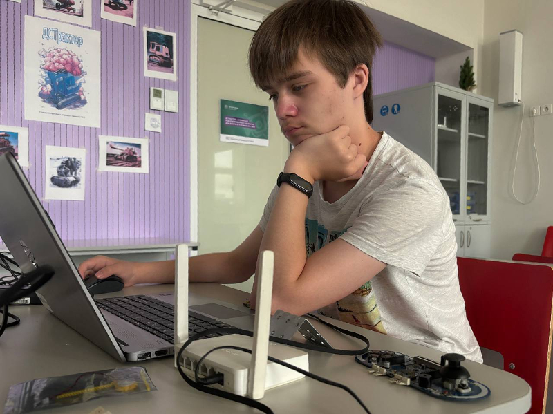 Команда Арсения совместно с ведущими инженерами тракторного завода ДСТ-УРАЛ работала над прототипом гусеничной роботизированной платформы для работы в условиях Арктики. Задача платформы – перевозить важные грузы в недоступные места, куда обычным машинам невозможно добраться. Арсений стал разработчиком цифрового двойника для обучения управлению платформой.