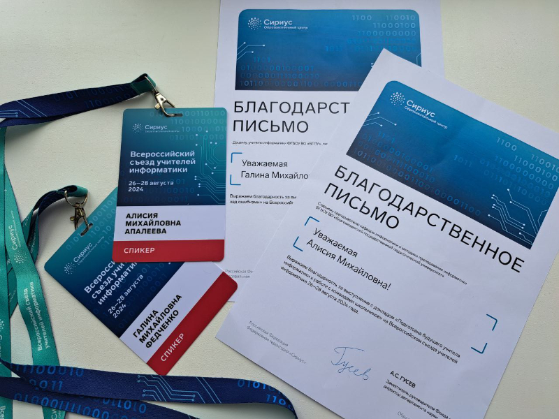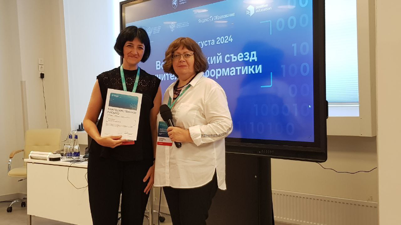 На этот съезд были приглашены спикерами преподаватели кафедры информатики и методики преподавания информатики БГПУ А.М. Апалеева и Г.М. Федченко. Алисия Михайловна выступила на секции «Повышение квалификации» с докладом «Подготовка будущего учителя информатики к работе с командами школьников». Галина Михайловна выступила на секции «Единый государственный экзамен» с докладом «КЕГЭ 2024. Работа над ошибками».